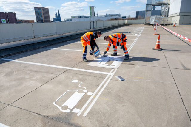 A total of 164 charging points can be found on the parking decks directly on the exhibition halls, on the grounds and in the multi-storey car parks.